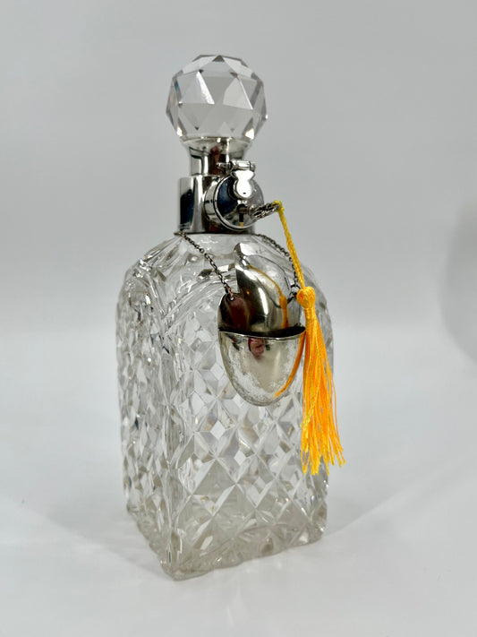 Edwardian 1916 Sterling Silver Leaded Crystal Locking Spirit Decanter & Key