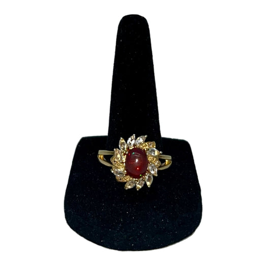Antique Opalescent Amber Cabochon & Spinel Ring- 2 Carats 9K Gold