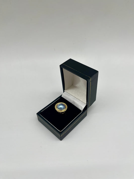 Black Mabe Pearl Ornate Ring, 5.8 CTW 10K Gold