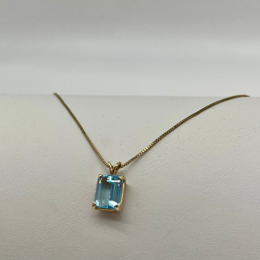 Emerald Cut Blue Topaz Necklace, 4 CTW 14K Gold