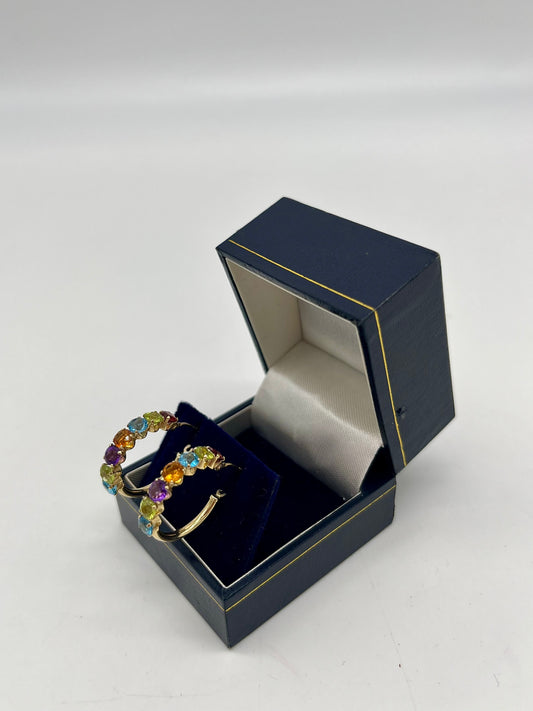 Precious Gemstone Multicolor Hoop Earrings, 3.3 CTW 14K Gold