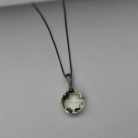Prasiolite & Diamond Necklace, 7 Carats 14K White Gold