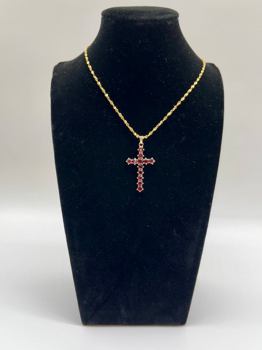Vintage Garnet Cross Pendant, 2.68 CTW 14K Vermeil 925