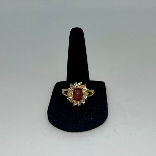 Antique Fire Opalescent Amber Cabochon & Spinel Ring- 2 CTW 9K Gold