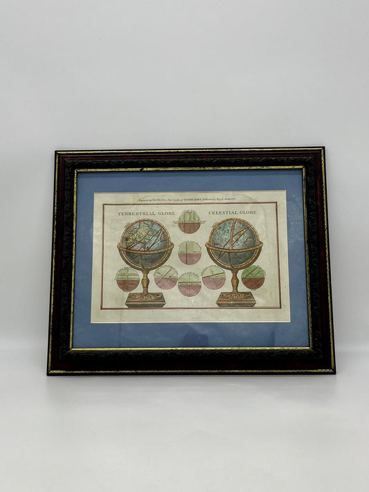 1787 « Globe terrestre, globe céleste et sphères » - Impression encadrée (nouveau système de géographie de Bankes)