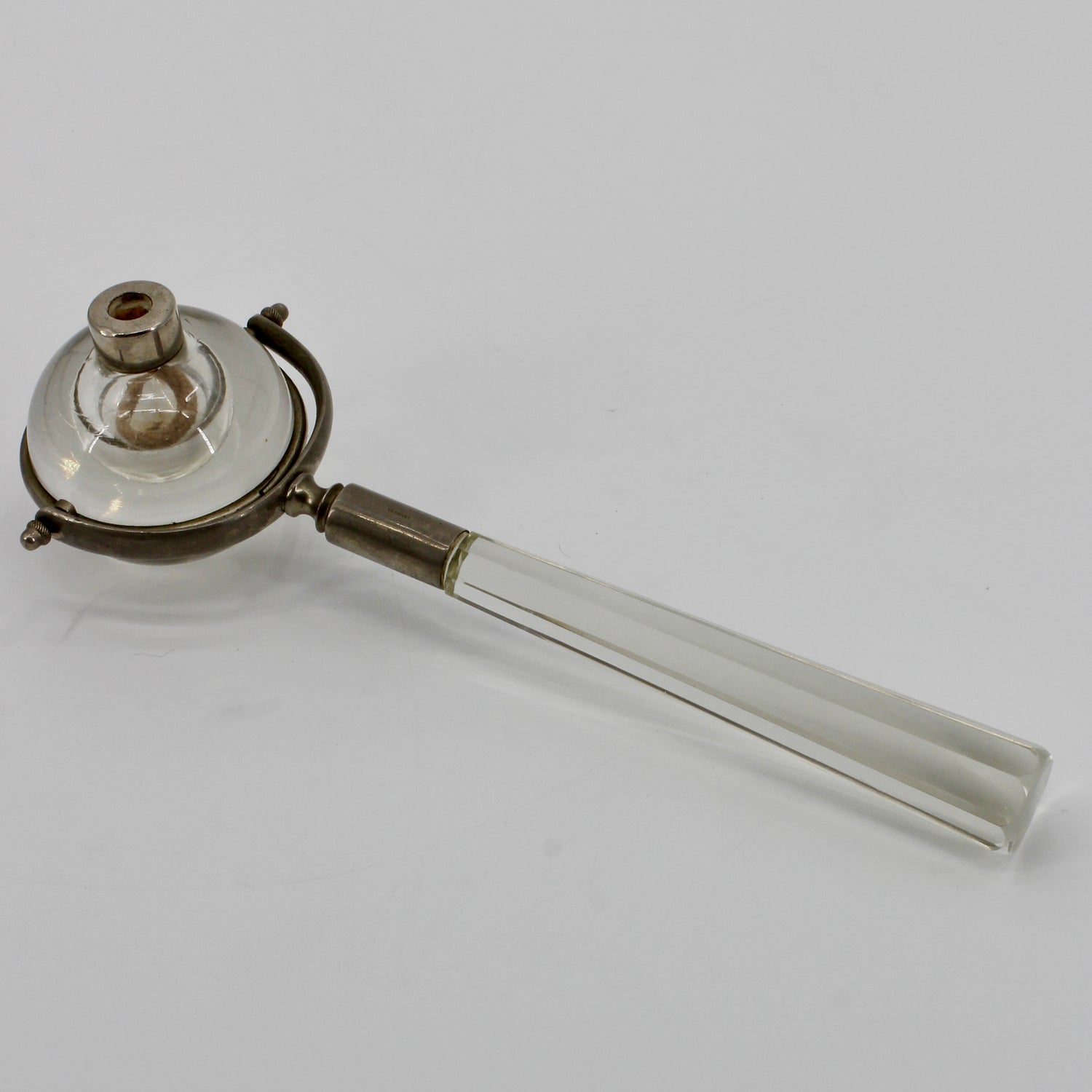 An interesting & scarce combination device; a fine quadruple-plated silver piece by Pairpoint Mfg. Co., this piece features a spirit cup with cigar holder above the handle and a removable fitted ashtray.