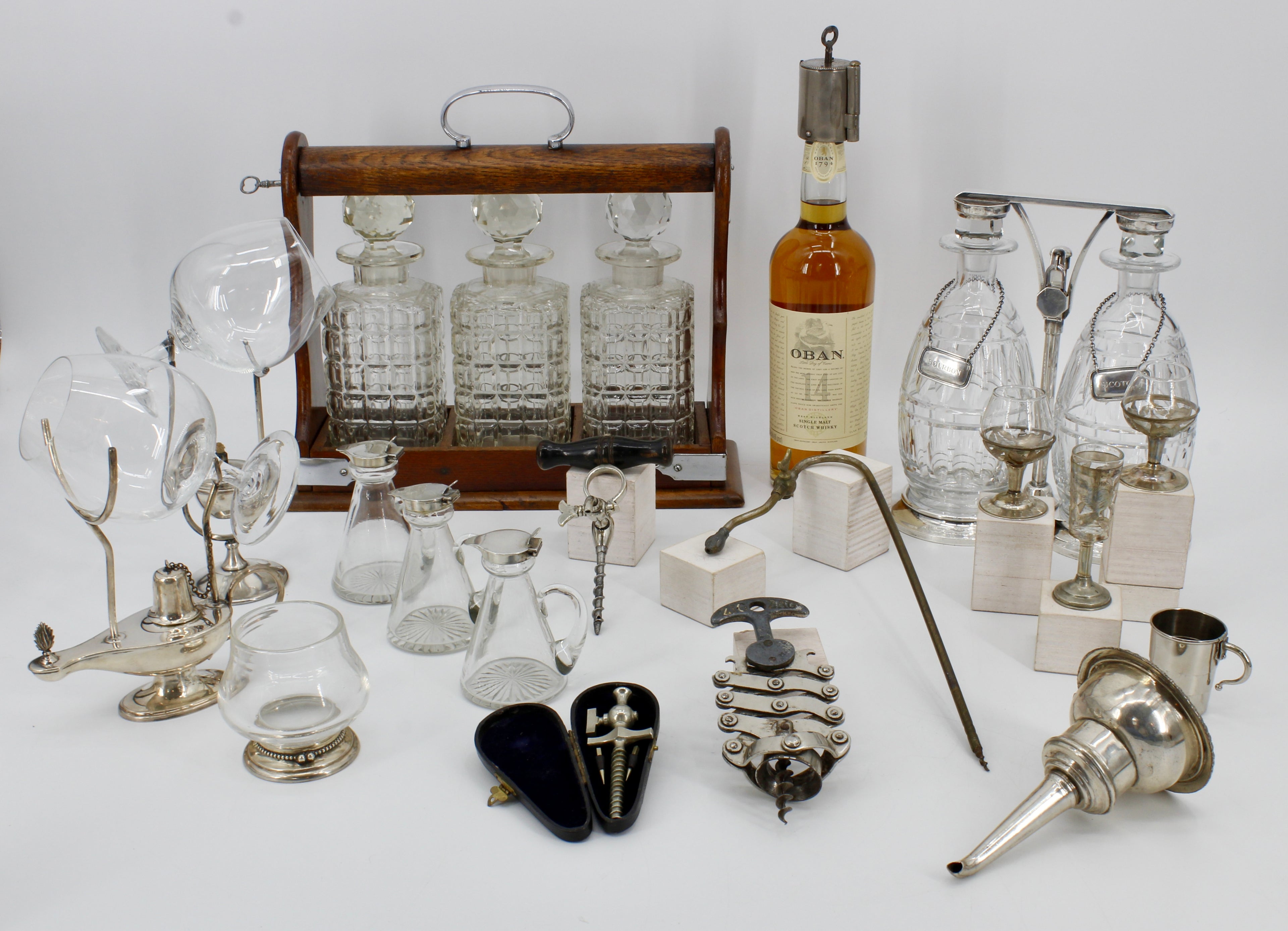 A wide array of Wine & Champagne accessories including aerators, wine/port cradles, bottle openers, taps, and corkscrews of various types.