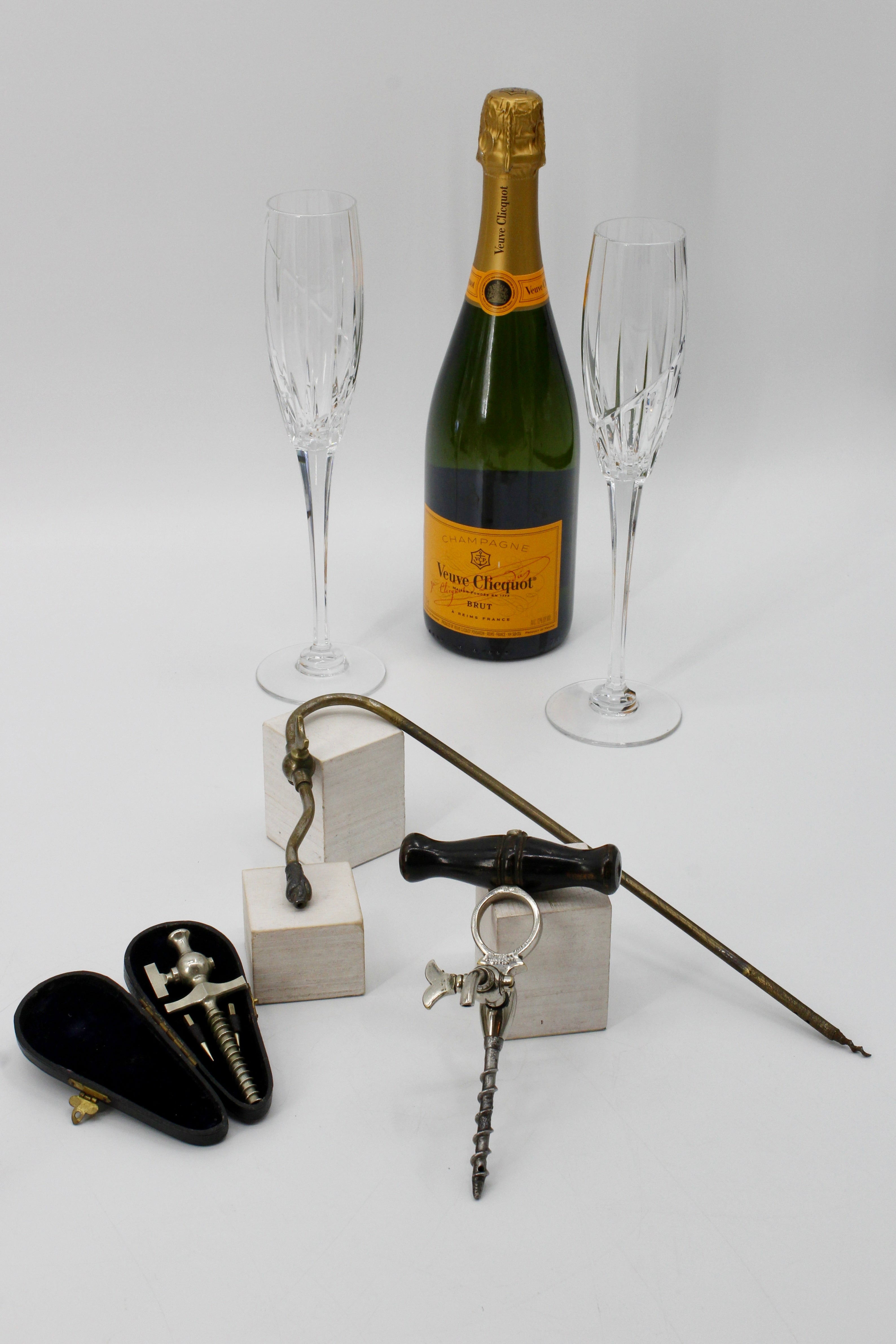 This long chapange tap is of French design. The steel tip screws directly into the champagne cork, while the knob is gently turned to release the pressure, allowing the champagne to pour from the dragon’s spout. This mechanism helps to preserve the carbonation of the sparkling wine for future enjoyment. A beautiful and functional addition to any bar cart.