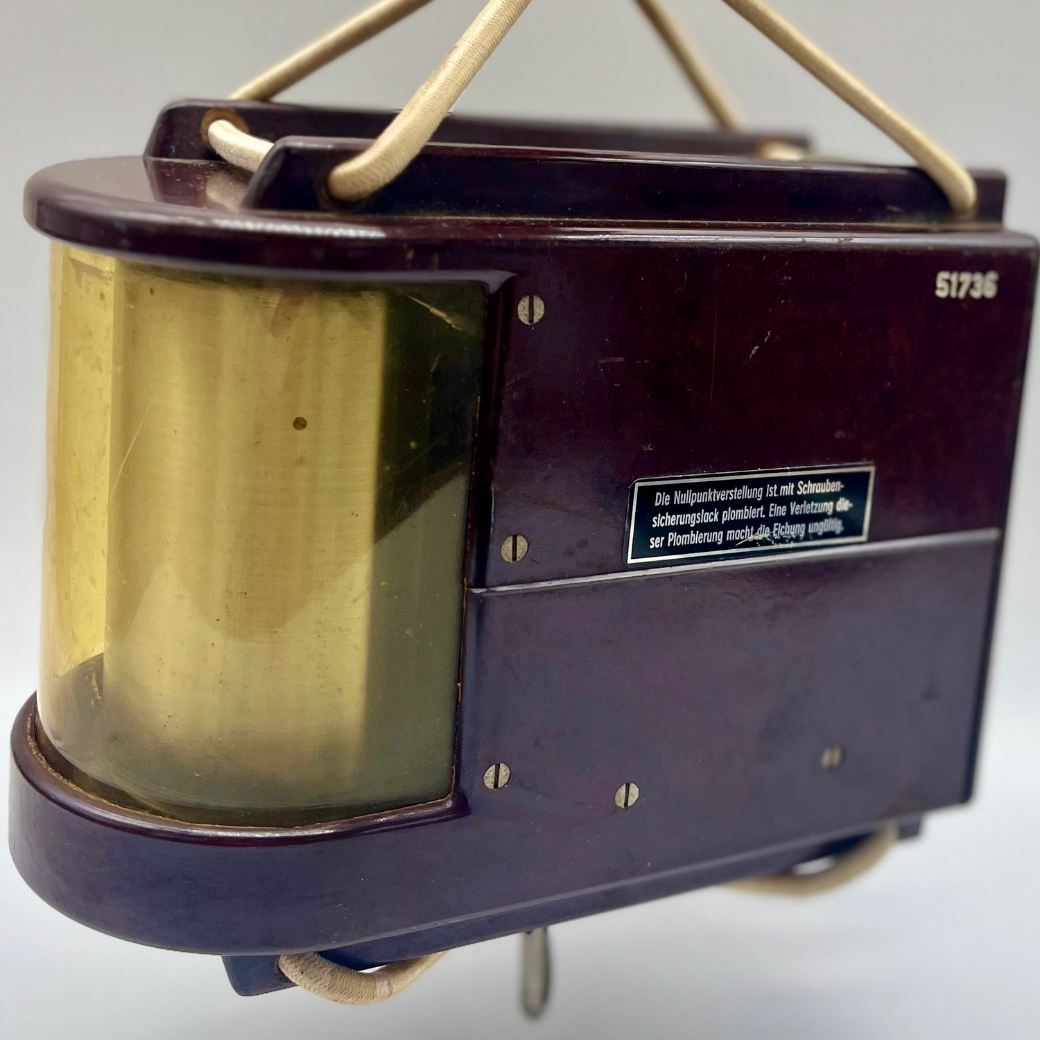 Functioning German Military Barometer, used for soaring & gliders. Last calibrated 17 May, 1980 by MITSA Lab. Serial No. 51736. Scarce gold colored model.