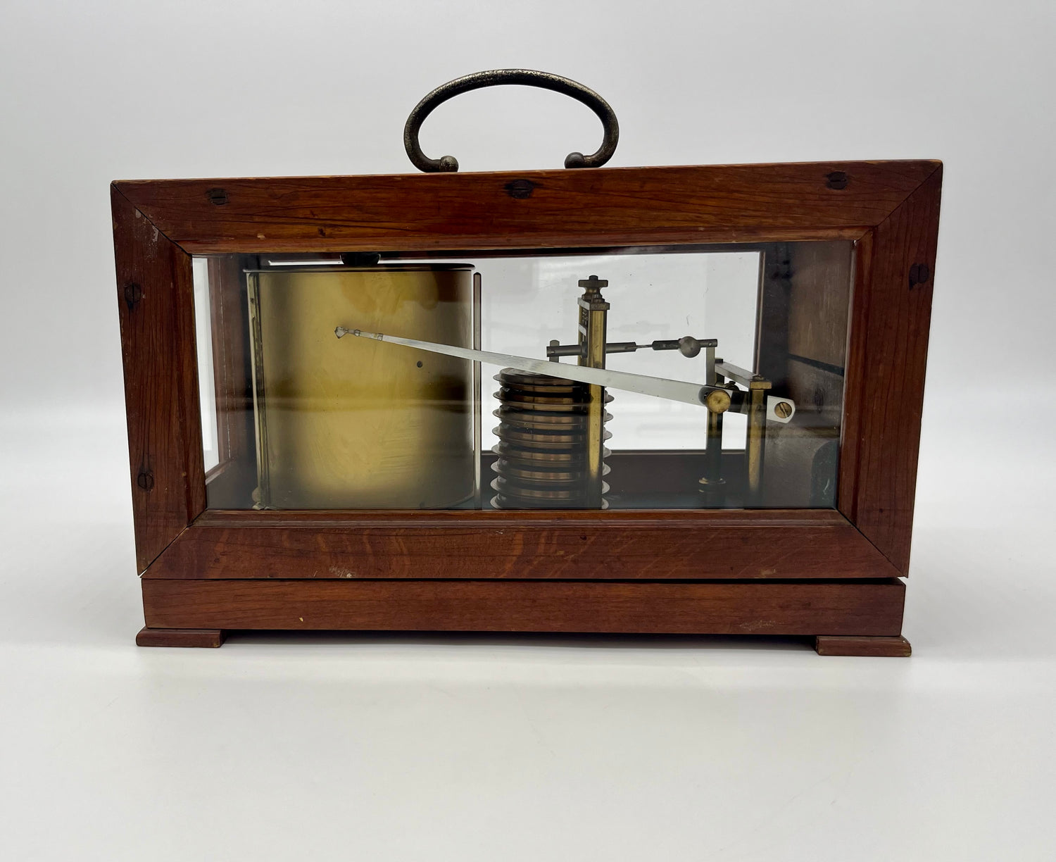 Hand-crafted in Hamburg. Encased in wood & glass box with metal handle and push-latch closure. Mechanics are comprised of fine brass and copper. Fully functional & professionally restored.