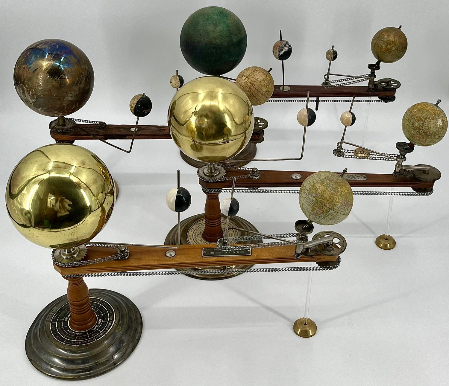 An impressive selection of early American tellurians by The Trippensee Planetarium Manufacturing Company. Original & prestored pieces.