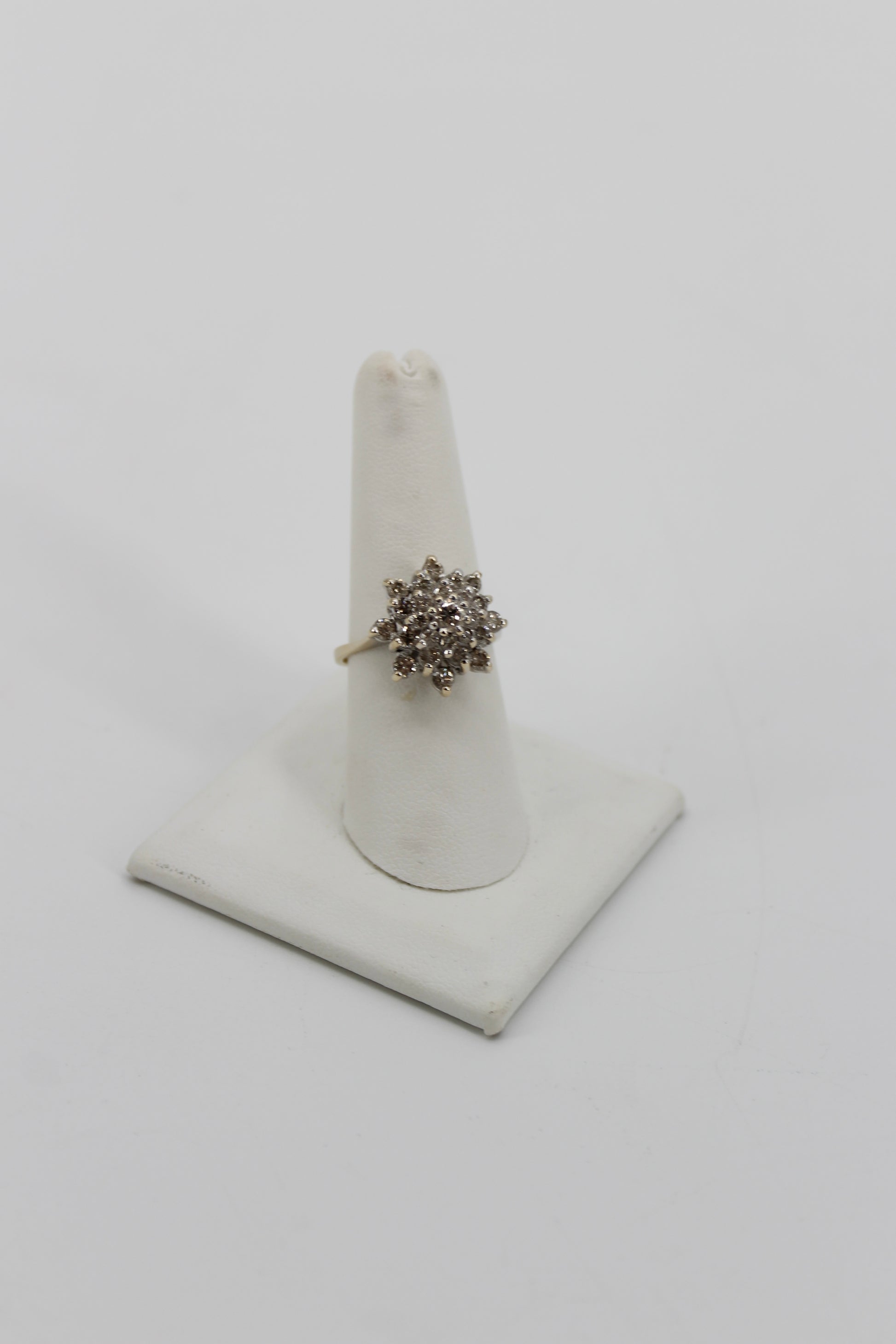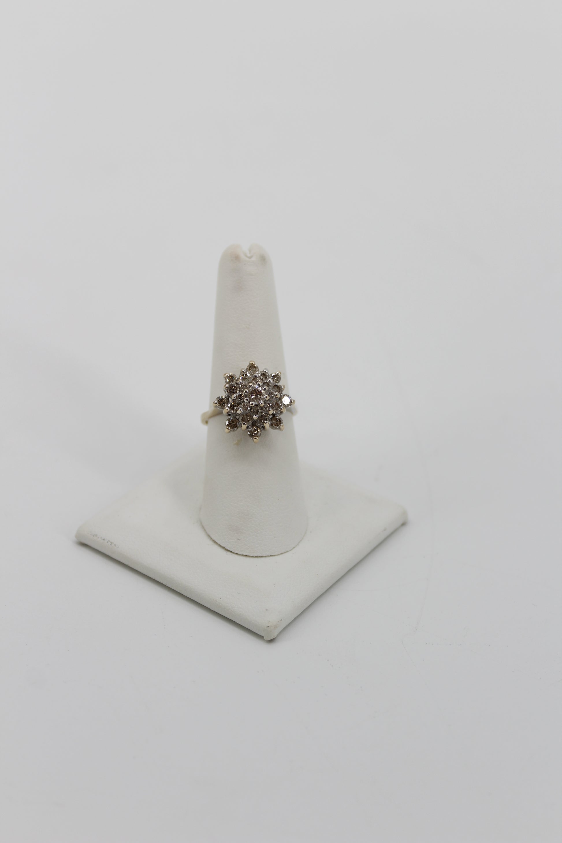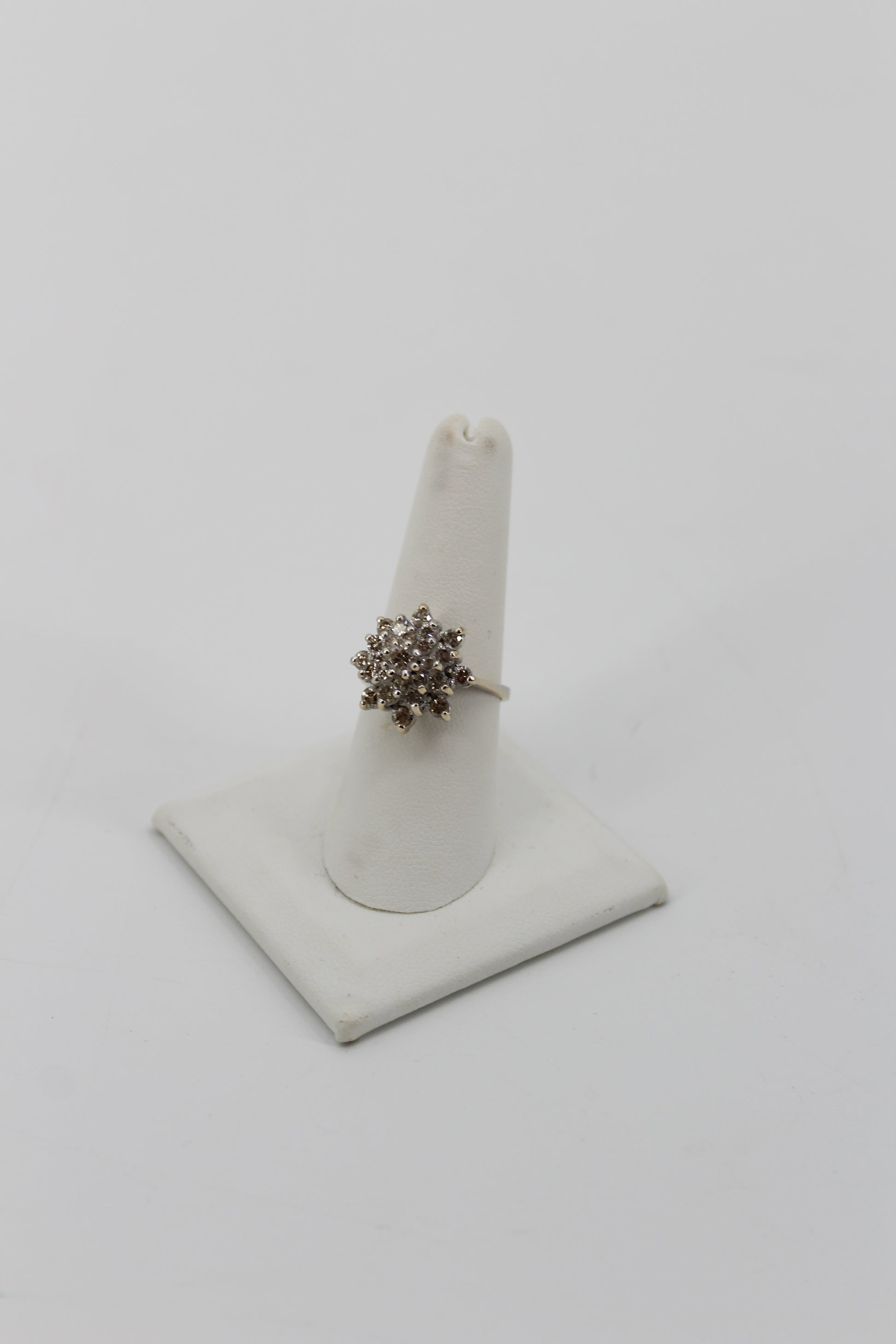 4-Tier Diamond floral ring, round-cut all prong-set, center old mine cut diamond.