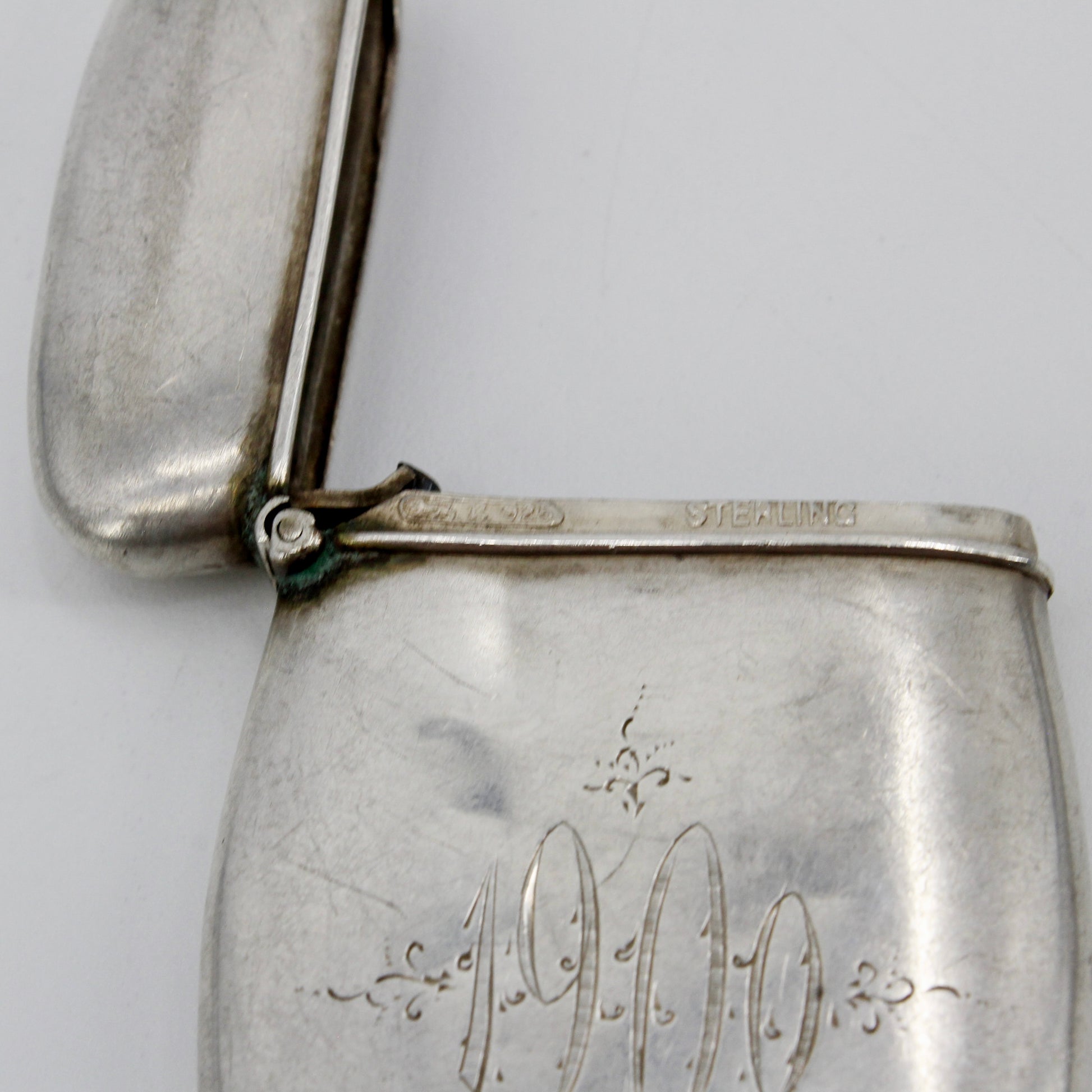 Engraved '1900' on one side, monogrammed 'MW' (Mappin & Webb) on the other. Stamped Sterling silver match-holder.
