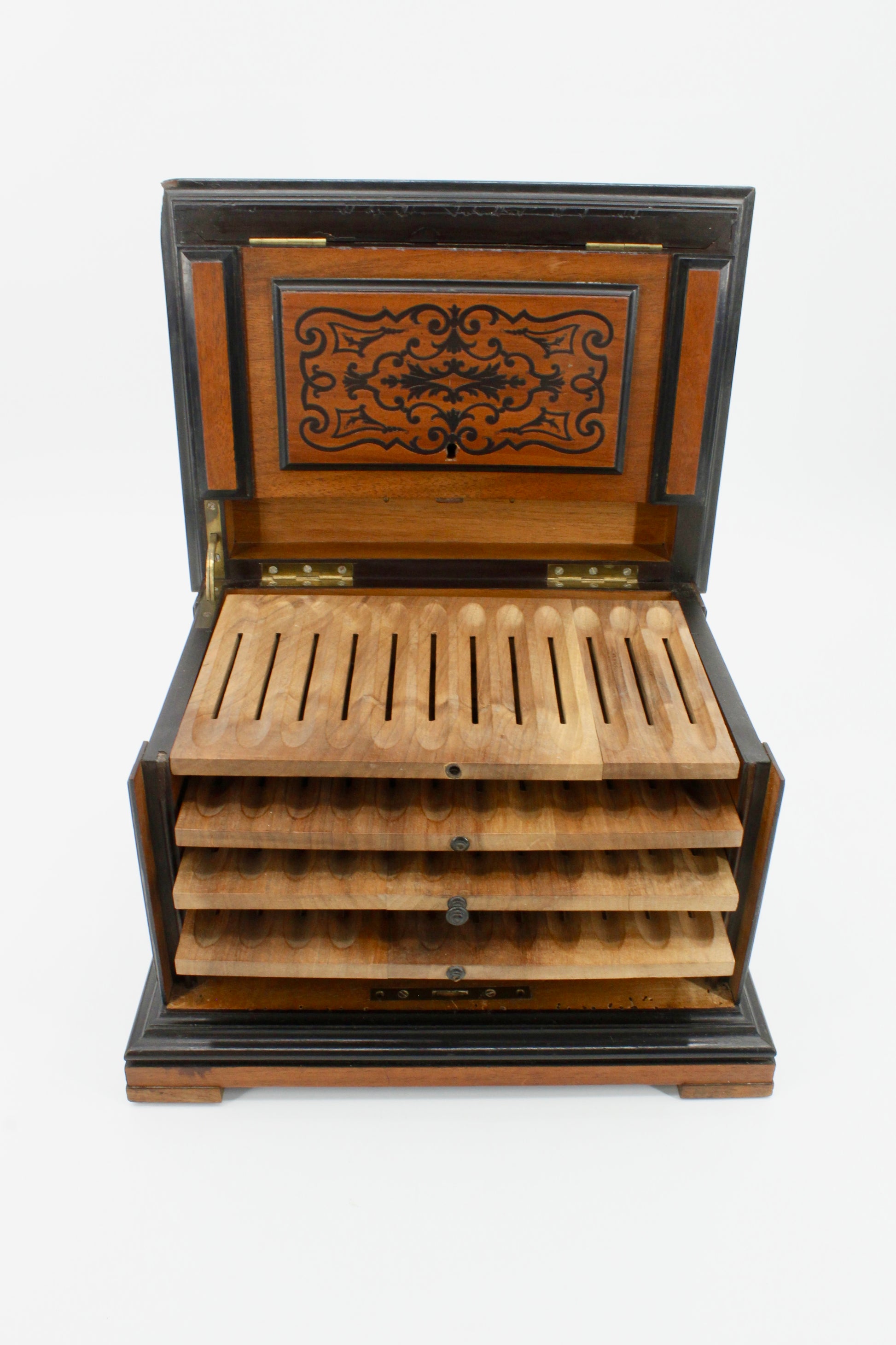 From the time of Napoleon III, this Mahogany humidor demonstrates the finest of French craftsmanship.