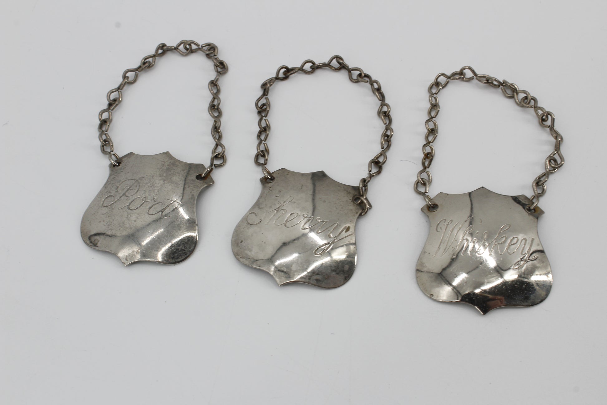 Trio of Sterling Silver Bottle Tags & Antique Book