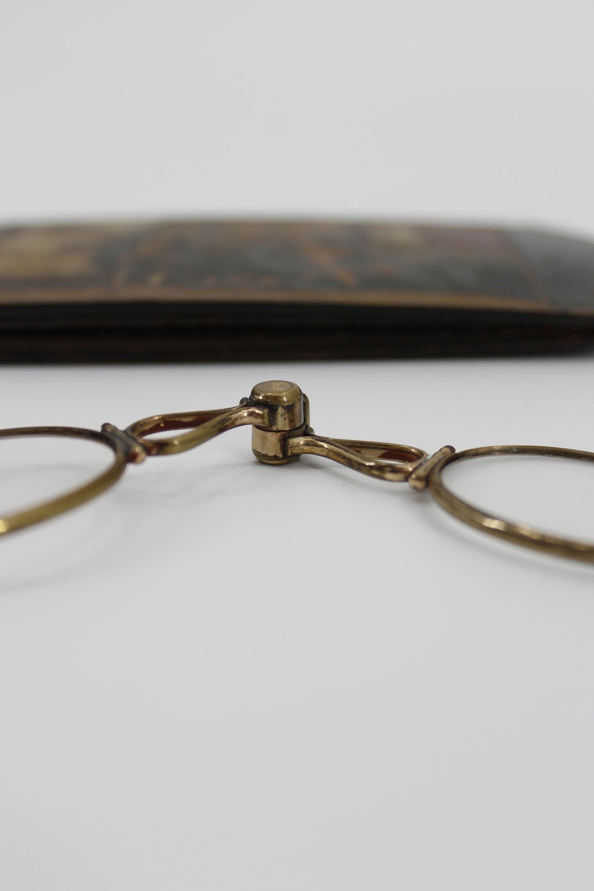 Victorian Lorgnette Folding Spectacles (Gold Vermeil, Hand-Painted Case)